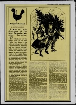 With the others we climbed aboard field wagons and, tractor-drawn, headed toward the woods. There we pulled long tendrils of running cedar from beneath the snow, cut down branches of spruce and pine, and then circled back toward our place, where 30-foot holly trees supplied enough bright red berries and shiny green leaves to festoon every house in the countryside.