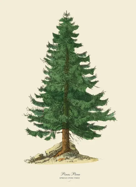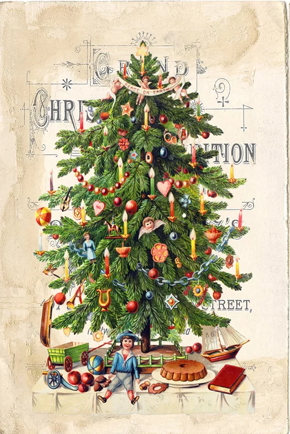 Next day, we three struck out across the meadow, toward the woods again, for our tree. We found it nestled into a hillside, a perfectly shaped fir, just the right size for our low-ceilinged keeping room.